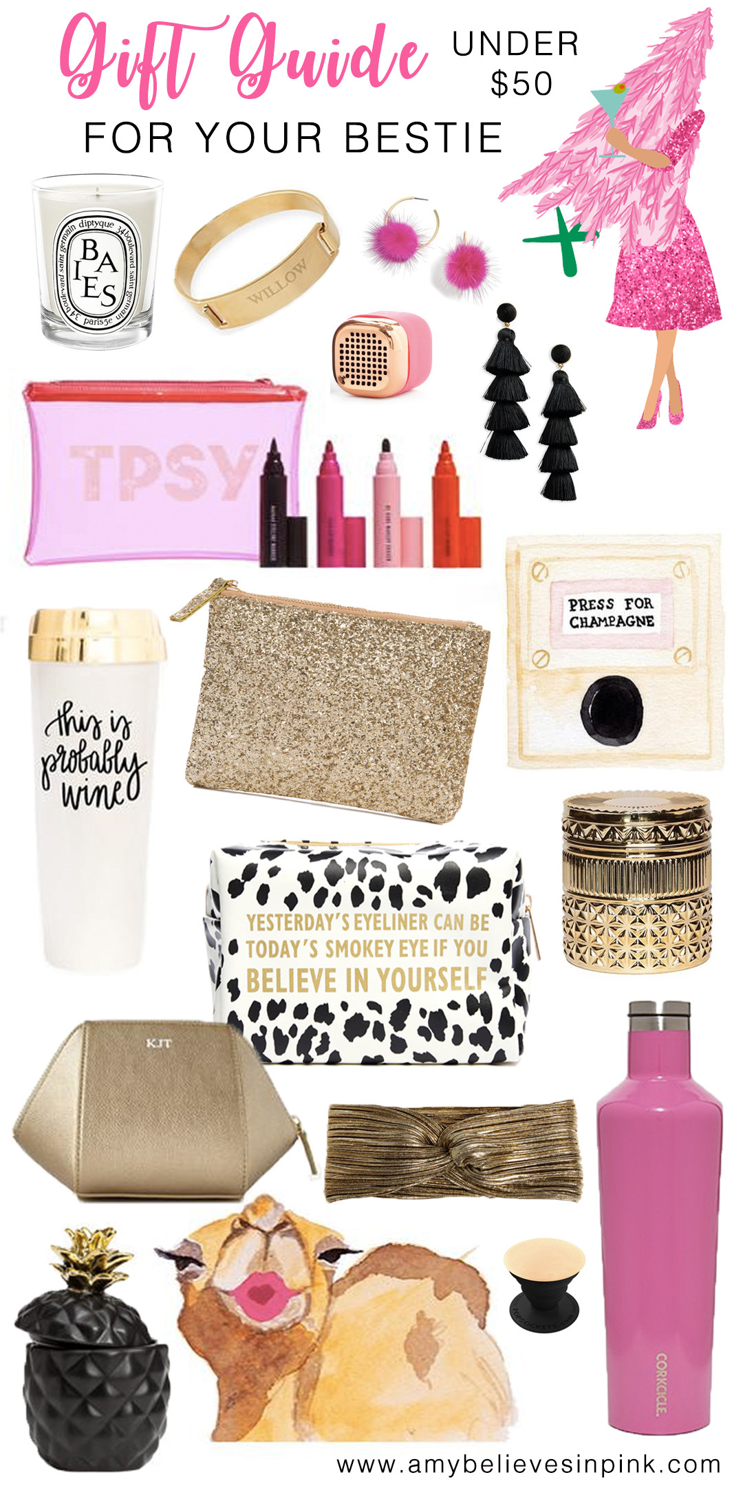 Sparkles, baubles, champagne, lipstick, and wine… these are a few things I share with and gift to all of my girlfriends. 😉 This gift guide came highly requested– there are so many Secret Santa parties coming up and $50 is a common budget for the gift. Many of the gifts in this guide are less than $50, so you can mix and match and buy more than one. Let me know if you find anything here that would be perfect for your bestie! And hopefully you can keep it a secret in time for the gift exchange… xx