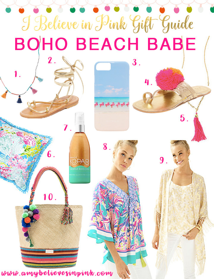 Kicking off this year’s IBIP gift guide collection with a personal favorite– the boho beach babe. This one is for all of our inner mermaids and turquoise ocean-lovers. Shimmery gold details, vibrant pom poms and tassels, and all of the best tropical motifs like coral and flamingos… you know I’m obsessed with it all. These items are especially applicable if you’re heading somewhere hot over Christmas break or know someone who is ??. Here’s to finding the sunshine and rum punch wherever we are in the next few months!!