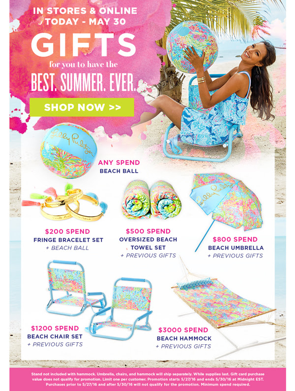Leave it to Lilly to WOW with the most fun and playful summertime gifts that you can receive with any purchase! See the full details below: