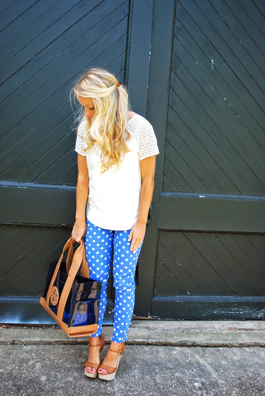 This seemed like the ideal May to June outfit. The only pants I’m going to wear in the upcoming months will be polka dotted or white jeans! How gorgeous is my neighbor, Alison’s yard? Remember it from my graduation tea party post?! It is so green and beautiful– the perfect summer setting. Looking forward to starting June off right in the upcoming days!
