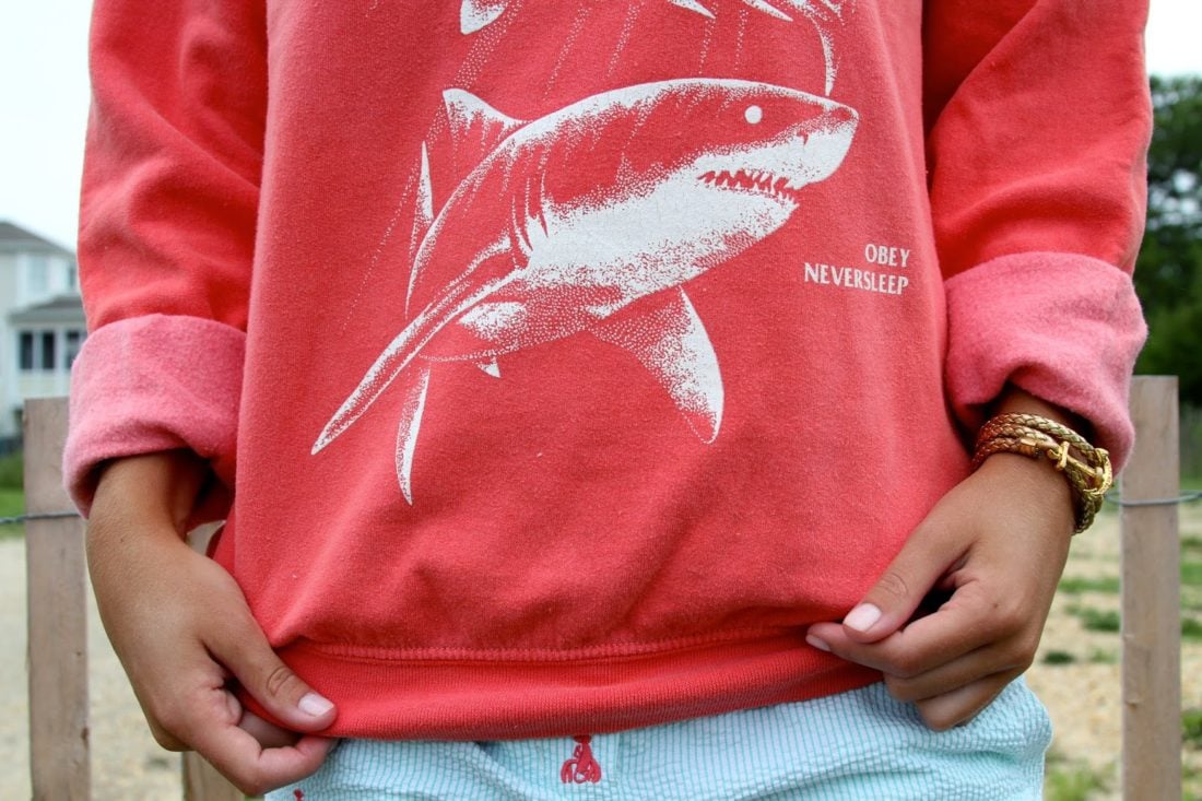 One of my best friends gave me this sweatshirt for my birthday this year. I literally flipped out when I saw it. There are three sharks printed on it and yet it still looks cute. The bright coral color is a lot of fun too!