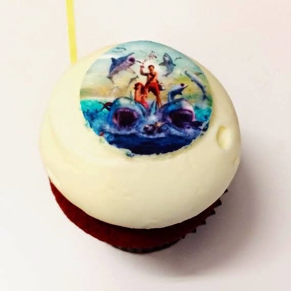 One of the Shark Week cupcakes that the Discovery Channel sent to the Daily Show to announce when Shark Week will air!