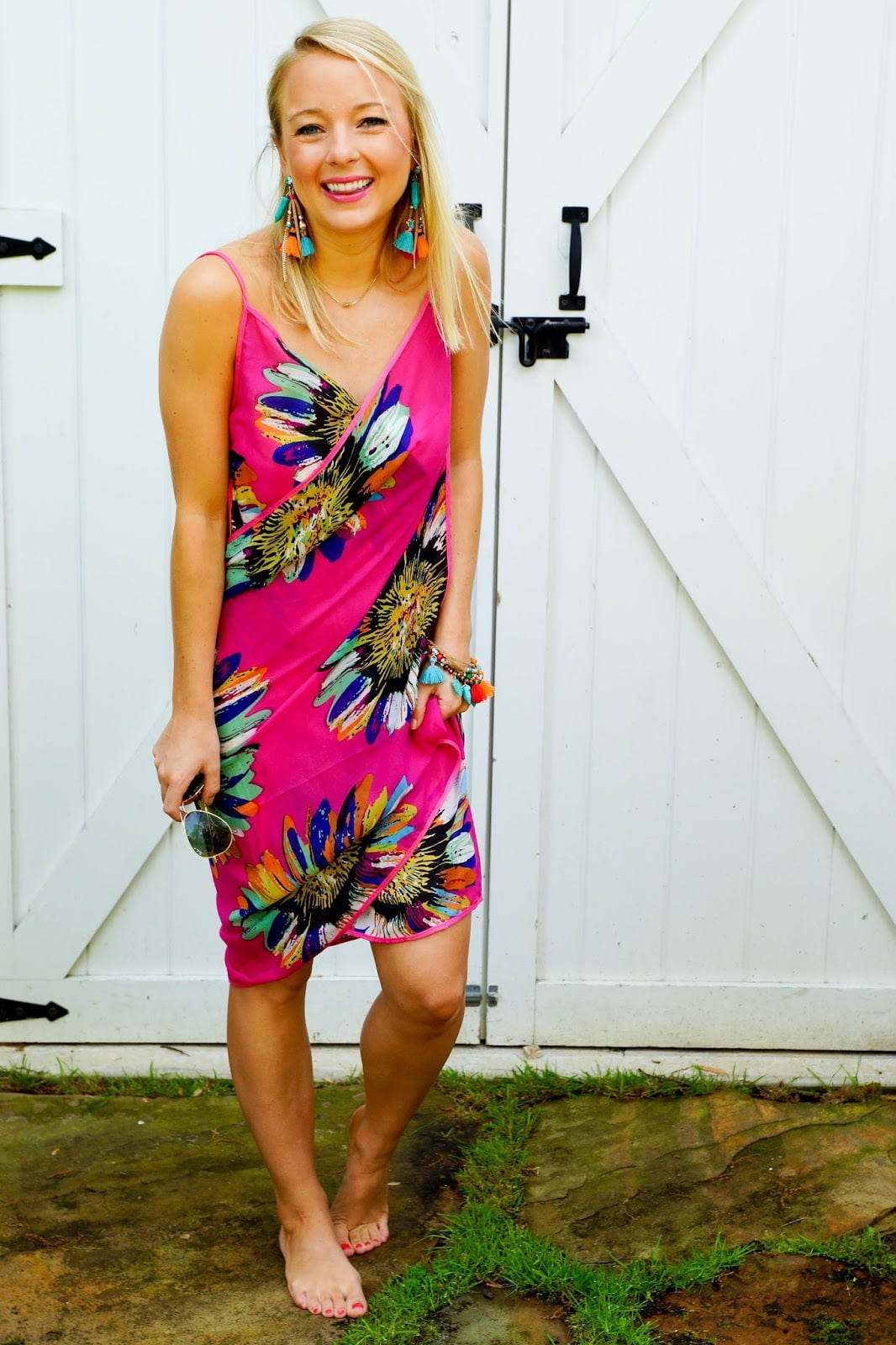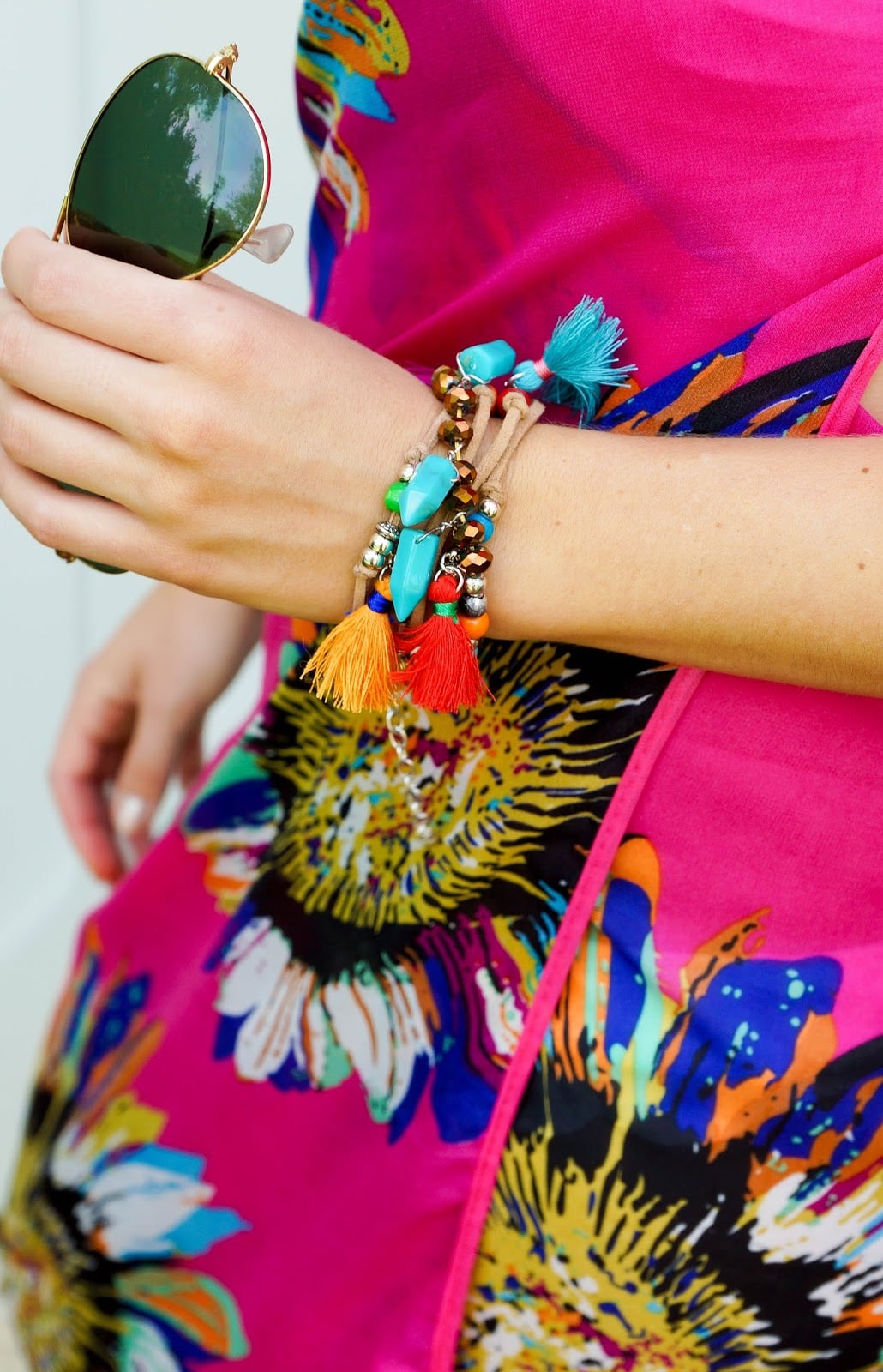 Outfit details: sarong: The Bagtique {only $20!} c/o // bracket: The Bagtique c/o // earrings: The Bagtique c/o // sunglasses: Ray-Ban // similar necklace here and here