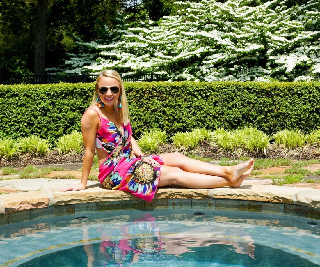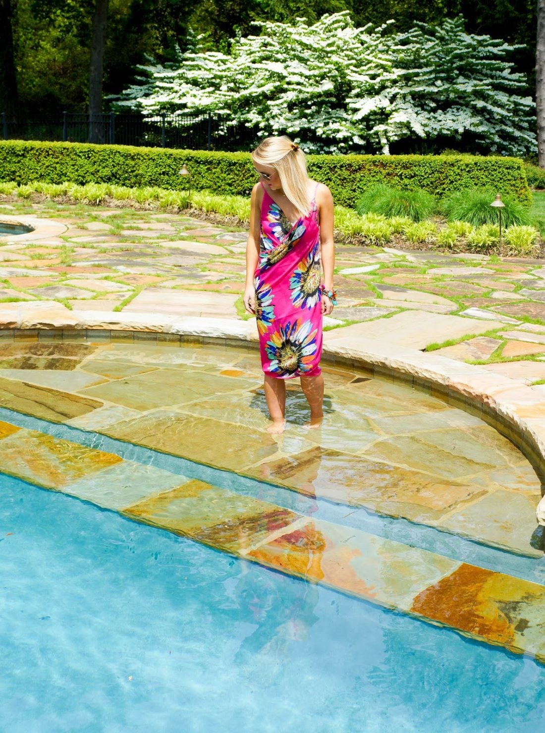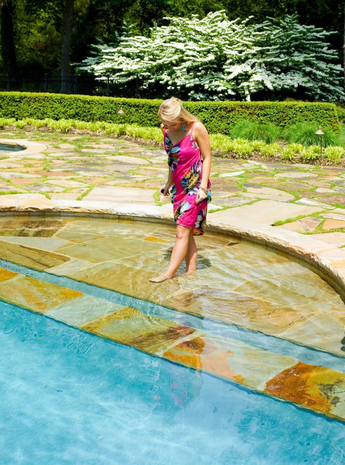 Cool, refreshing pools, relaxing hot tubs, and one of those beautiful spring days that feels more like the middle of summer… This poolside ensemble is easy, light and ideal for balmy days spent in the sunshine!!