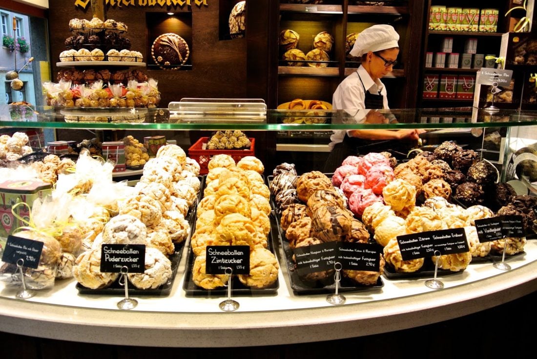 These are the Schneeball pastries, which are snowball shaped cookies that date back 300 years, particularly in Rothenburg. It is basically made of pieces of dough, made into a ball, deep fried, and then covered in fun toppings like powdered sugar and vanilla frosting! No lie, I ate these in the backseat of the car for the entire road trip.