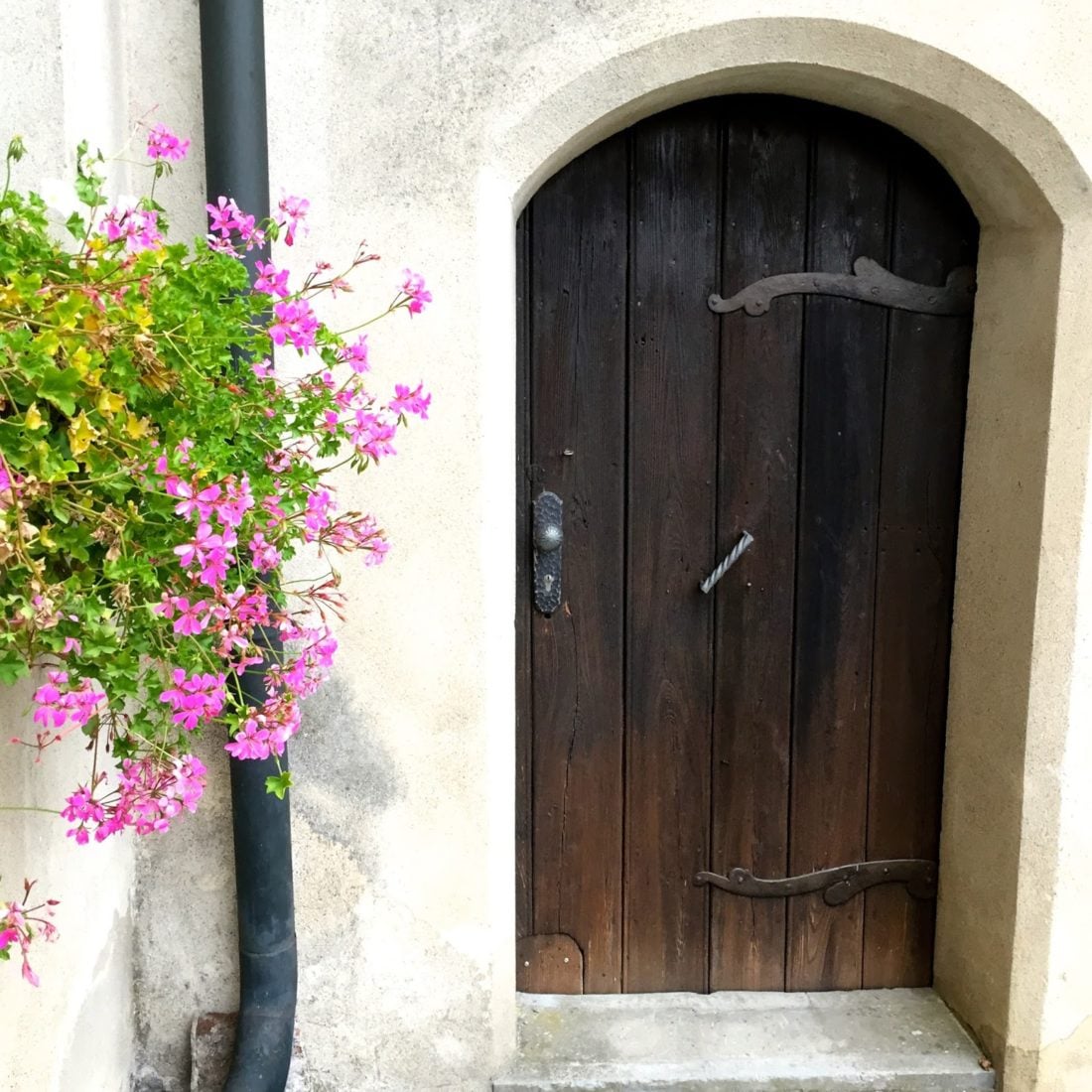 Notice: the window boxes, the colorfully painted buildings, the lattice architecture, the big shutters, and the cutest front doors EVER.