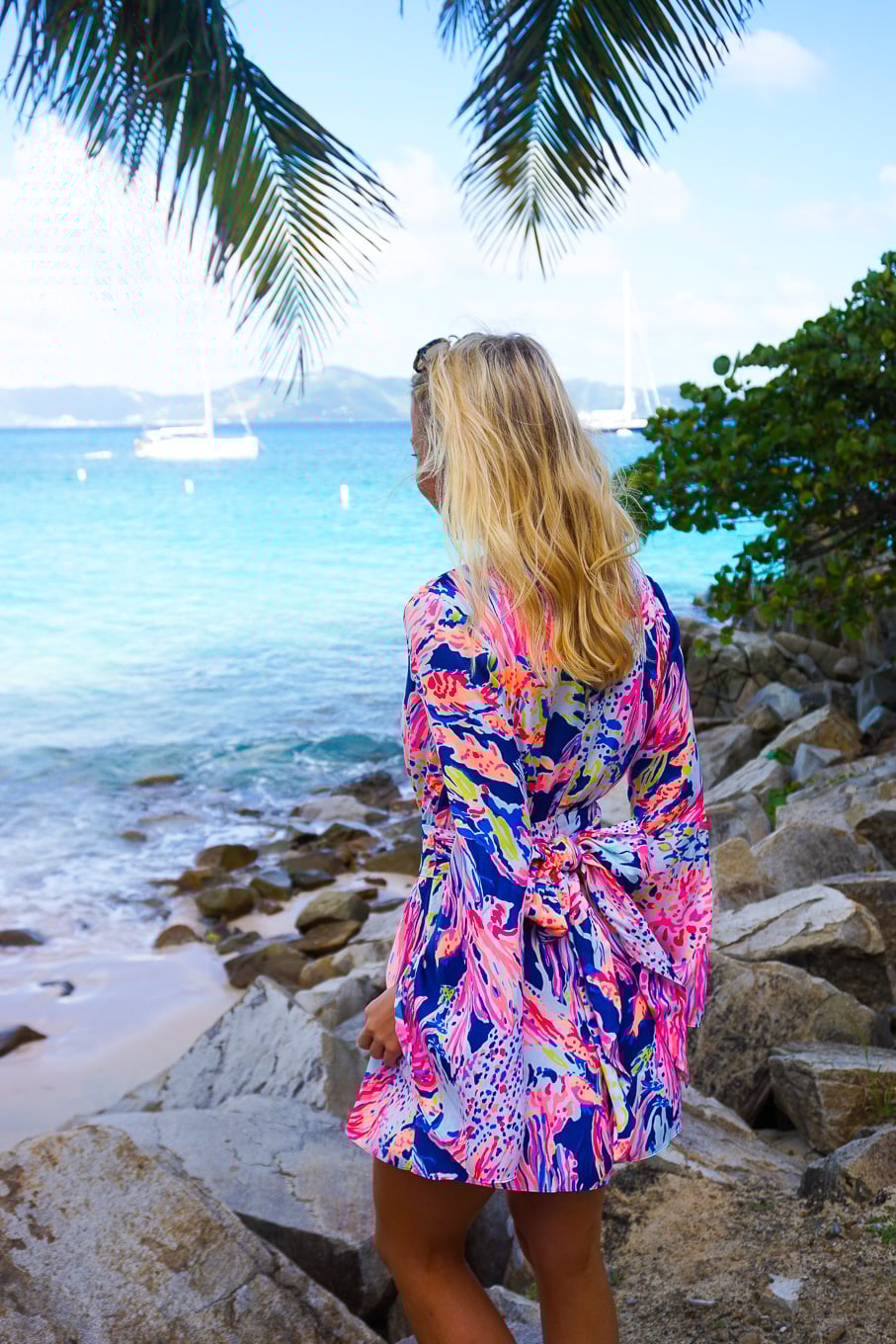 There are few outfits that match the vibrancy and foliage of the tropics. When I’m on vacation I’m in a no shoes, no bra mentality (ha), so I tend to pack outfits that both fit this and are appropriate for wearing around a resort. This is a tough combination to find, but this long-sleeve Lilly romper was ideal. Its neon print accentuates any tan and the silky material feels so smooth against sunburned skin! Two more outfit musts when I’m in the islands.